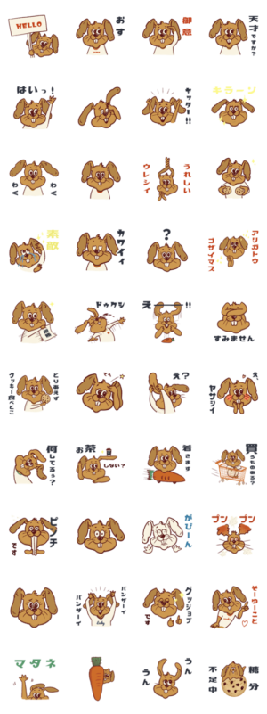 アメキャラみたいなウサギのスタンプが可愛いい種!類も多いから日々使えます。