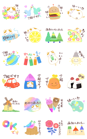 日常の簡単なやりとりによく使う[了解]専用スタンプです。大人も使いやすい丁寧な表現も入っています。aya より発売