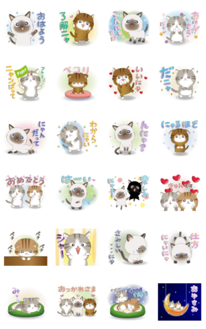 ちび猫ちゃん達のご挨拶&お返事スタンプ♪茨家エヴィス より発売