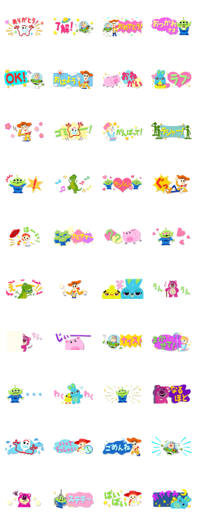 トイ・ストーリーのペーパーカット風のスタンプ登場!トーク画面で場所をとらずに読みやすい、省スペースなスタンプです。ポップなカラーが楽しいデザイン♪