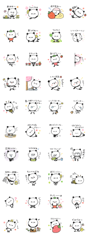 だらだらっとした、ゆるーいパンダの春スタンプ。春が来て嬉しいけども、花粉症に苦しむぐーたらぱんだです。kazunoco より発売