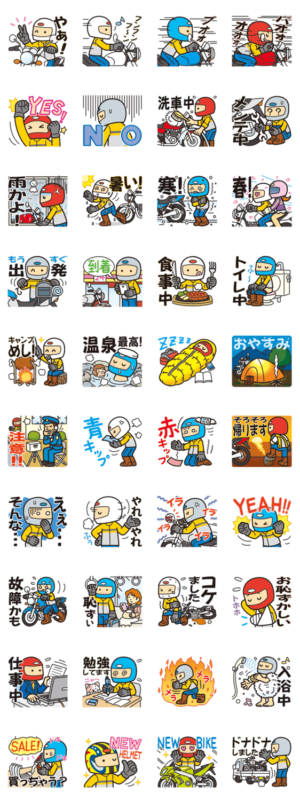 ライダーの日常やツーリングのスタンプです。バイク好きの方に使っていただけたら嬉しいです。スタンプ「バイク乗り」に文字などを追加した修正版です。