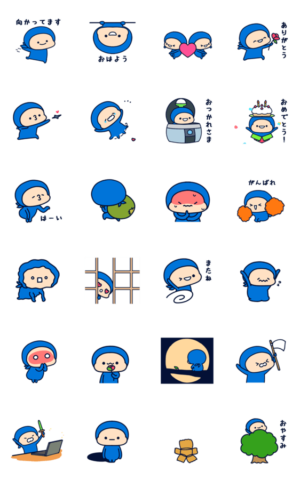 青い全身タイツがカワイイ!忍者の男の子のスタンプです♪家族や友達、カップルで使いやすい日常挨拶やリアクションが盛りだくさん!華麗な忍術でトークに彩りを添えます♪guji より発売