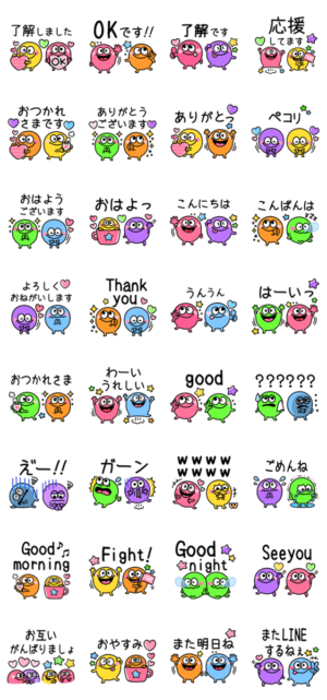 カラフルモンスターの毎日使える言葉♡ スタンプ画像一覧