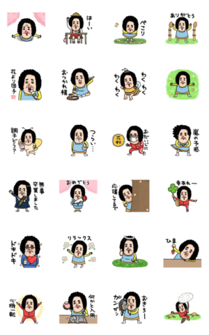 春気分のほんわかとしている母がとても愛しいです。シロツメクサの花かんむりを頭にかぶっているのが一番好きです。一つ一つのスタンプを見ているととても母に癒されます。