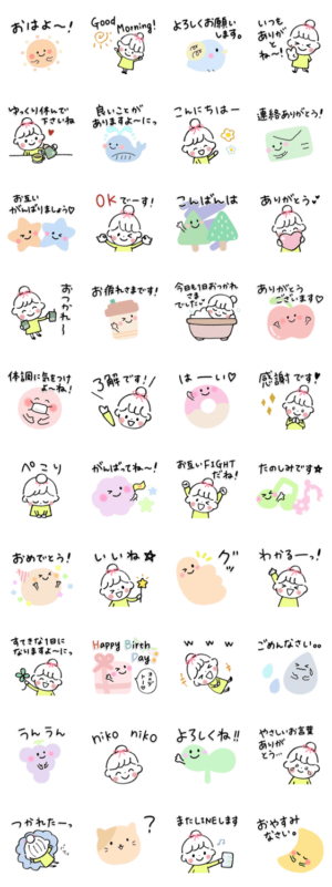 お団子ちゃん毎日使える手書きのスタンプの1弾です♪大人/女性/女の子/かわいい/シンプル/敬語/やさしい色合い/パステル/くすみ/カラー/日常/基本セット/プレゼントにも◎