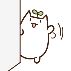 頭に葉っぱが生えている猫の日常に使えるスタンプです。有葉 より発売