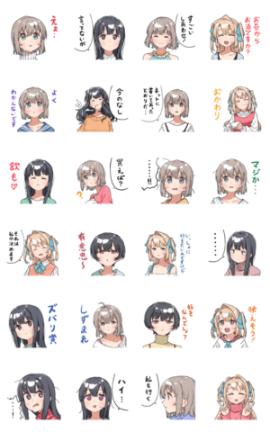 酔っ払いいちゃいちゃガールズコメディとして知られている漫画『上伊那ぼたん、酔へる姿は百合の花』の公式スタンプです。ガンガン使っちゃってください。