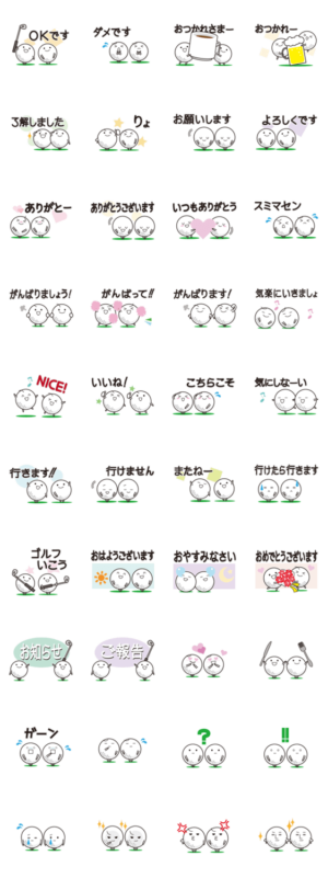 双子のゴルフボールさんをモチーフに、敬語・丁寧な言葉が多めで毎日幅広く使えるスタンプです。シンプルで文字大きめなのでシニア・中高年の方にも見やすく便利です。bft より発売