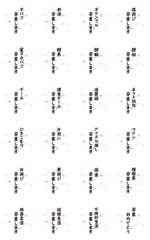 強い意志を持って何かから卒業したい時に使うポップアップスタンプです。タバコ、お酒、ひきこもり、夜遊び、麻雀、アイドル推し、ファン、等々くーが より発売