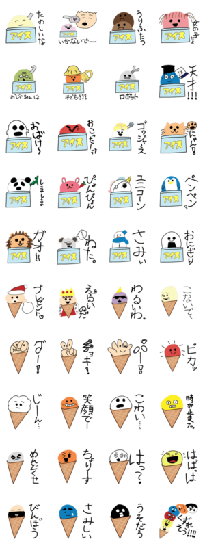 色々な顔をしたアイスクリームがしゃべります。 これは小学生が作りました。まりてれ より発売