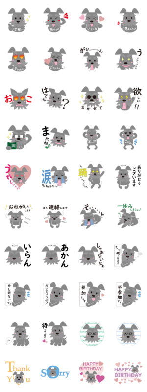 シュナウザーのロッキーです。日常使いやすい文字入りスタンプです。sa_achi より発売