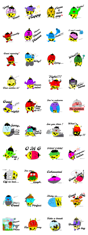 大人も学生も使える英語スタンプ!こっそり日本語も添えてます。2014年生まれが育てている「おにたま君」たちと素敵な日常を過ごして下さい。