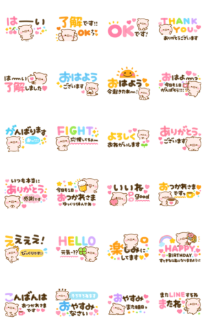こぶたのぽこちゃん♡の毎日使えるスタンプです。カラフルな文字が可愛い♡皆んなで使える敬語や言葉を厳選しました♪省スペースだからちょこんと使えて便利♪