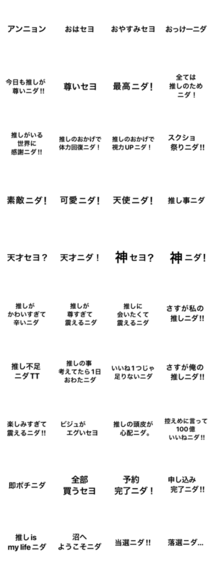 楽しくオタ活ができるスタンプです。推しがいるあなたに。#推しが尊い#オタク#ヲタク#推し事#偽韓国語yellow23 より発売