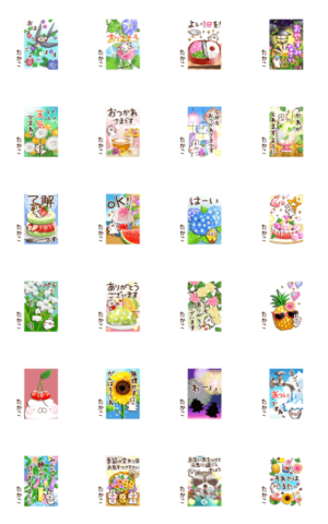 たかこ/タカコ専用78。動く/うごく/春/夏/梅雨/猫/敬語/七夕/天気/気遣い/挨拶/デカ文字/ひまわり/ねことうさぎの名前スタンプ/山田まぽん作。