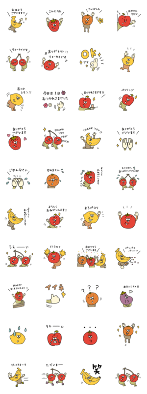 愉快なベジフルズの毎日使いやすいスタンプSETTFAS より発売