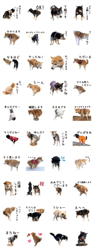 「お仕事中」ポーズの柴犬たちを集めたスタンプです。shima zoo works. より発売