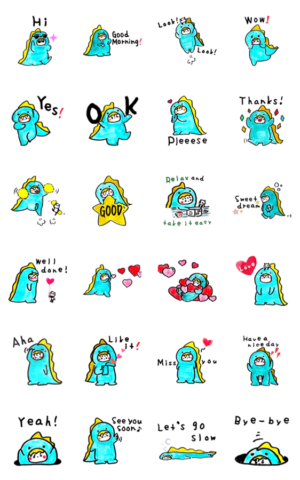 【英語版】きぐるみ女の子(恐竜さんだゾ) スタンプ画像一覧