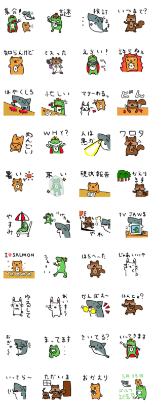 森の仲良し3人組のスタンプです。 新たな仲間、リスとうさぎが森にやってきた。(うさぎはちょっとだけ)299 より発売
