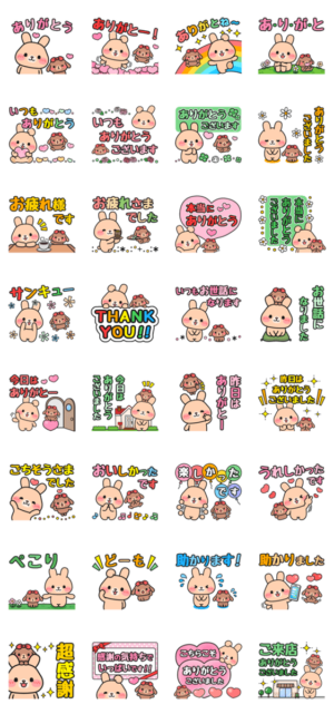 色々な『ありがとう』や『感謝の気持ち』がいっぱいの、毎日使えるセット☆家族や友達など親しい人に♪目上の人や仕事関係に♪様々なシーンで、うさぎが気持ちを伝えます♡