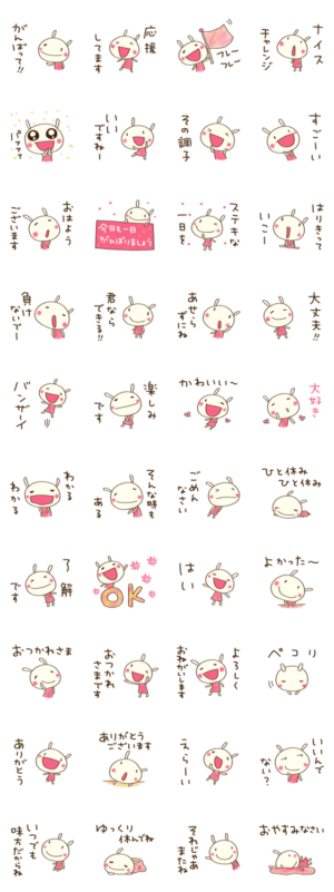 どちらかというと自信のないうさぎ。「バンザーイ」「ナイスチャレンジ」から「がんばって!!」まで。身近な人へ、勇気がでる応援メッセージをたくさん届けよう。Mami / エストループ より発売