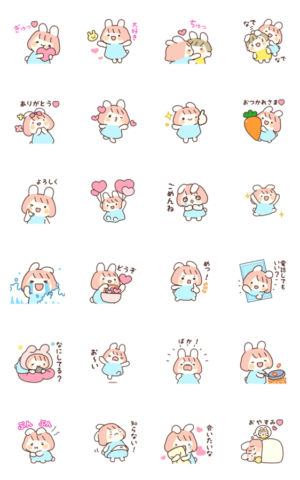 ウサギみたいな女の子が愛を伝えるアニメスタンプ。可愛く動いてトークを盛り上げます♪挨拶・リアクション多め。カップル、夫婦向けで、男の子ver.とペアで使えます。