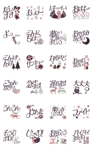 昭和レトロを感じる文字に、ほんのり北欧風なイラストをあわせた動く日常スタンプです。キャラ無しなので大人も若者も幅広い年代で使いやすいシンプルタイプ♡デカ文字♡
