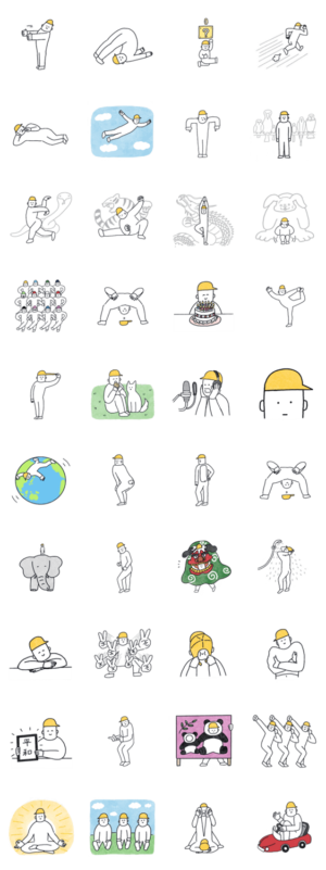 イエローキャップおじさんの言葉なし、何かが伝わるかもしれないスタンプです。fukucoco より発売