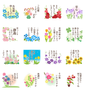 お見舞いの言葉と花いっぱい スタンプ画像一覧