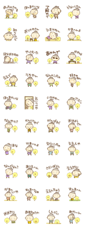 この関西弁のおばあちゃんのスタンプはよくできています。母にプレゼントしたいですね。