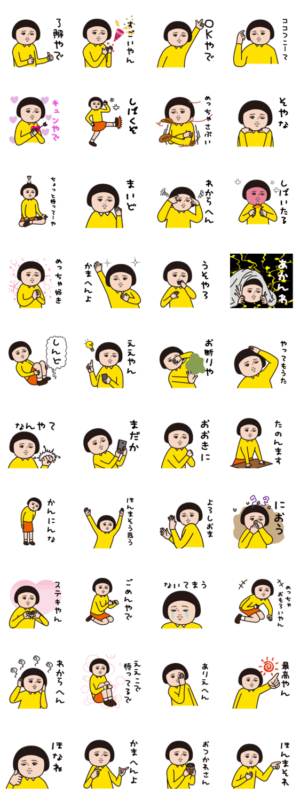 パッと見ダサいけど、昭和味があってかわいいスタンプ(関西特別編3)いつもの芋ジャージを着替えて関西弁(方言)しゃべってます。第3弾は動かないスタンプですどんおりじなる より発売