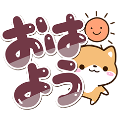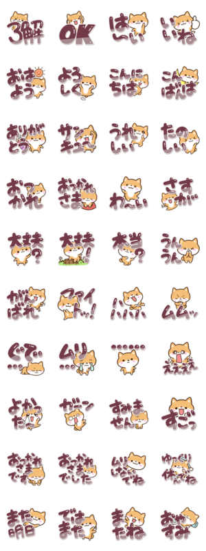 ちいさい柴犬の豆柴スタンプ。よく使う言葉のデカ文字版です。大きい文字で選びやすく目立ちます。しばいぬ好きの方、コーギーや秋田犬を飼っている方にもぜひ。【かたこ】かたこ より発売