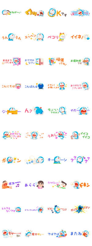 省スペースなドラえもんのスタンプが登場!いろんな場面で気軽に使えるワードがいっぱいで、トークを妨げずにサクッと使えます♪