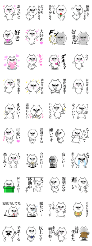 目ヂカラ☆にゃんこ12【キモチを伝える】 スタンプに書いてある文字一覧