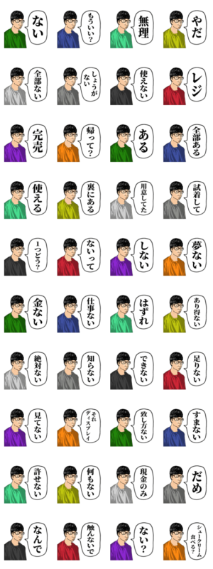 【ネタ/煽り/どや顔/面白い/愛/返信/便利/使いやすい/ムカつく/友達/感想/かっこいい/イケメン/眼鏡/タメ口/ストリート/色々/意味不明/カラフル/ファッション】