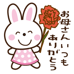 お母さんにたくさんありがとうを伝えることができるスタンプです/母の日/肩たたき券/おてつだい券/カーネーション/お母さんありがとう/お母さん誕生日/うさぎ