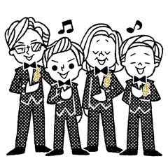 男性4人のアカペラコーラスグループ「ウィッシュ・キャラバン・カルテット」コニタン、ヒロミ、リヒト、ジュンジュンがいます。届け僕らのハーモニー!