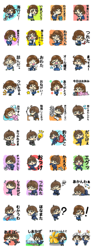 香住の学生用スタンプができました!いろんな学生さんが使えるよ!友達とシェアして、学生生活を楽しもう!ぎんいろ より発売