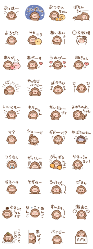 おさるのもんちぃの、昔懐かしい言葉・死語のスタンプです。con より発売
