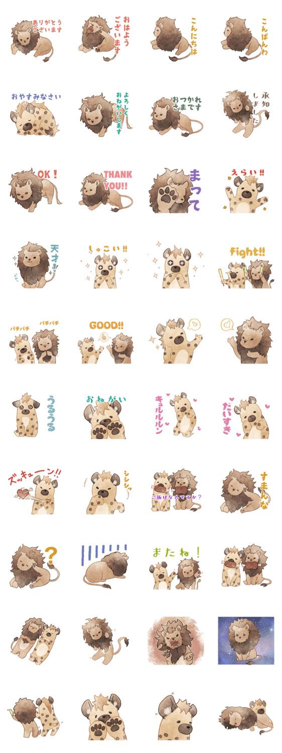 ライオンさんとハイエナさんの日常使いできるスタンプです 推し活動してる人にも使えますToriten より発売