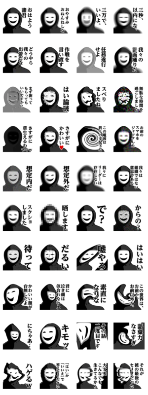 匿名集団の声明スタンプです。謎の活動家。4A-Studio(よんえーすたじお) より発売