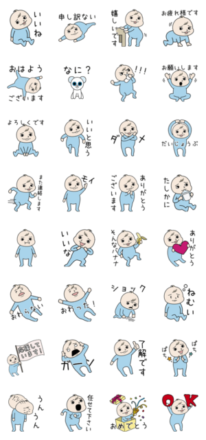 9か月になった赤ちゃんの日常をスタンプにしました。 小さいサイズのスタンプもあります。黒ごま より発売