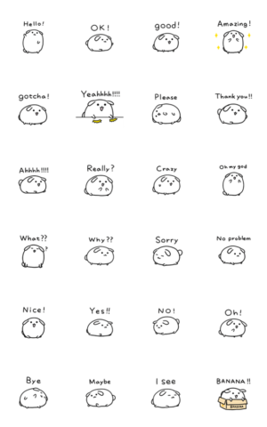 ひたすら震える白い犬のスタンプ英語バージョンです!tamanegi より発売