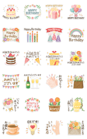 ステッカー風*誕生日・お祝い スタンプ画像一覧