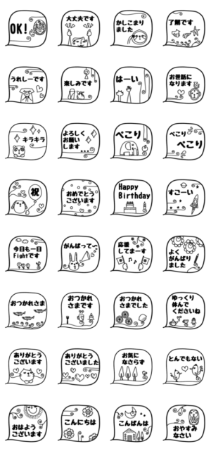 すっきりとまとまっていて使いやすいスタンプです。種類が多いのも嬉しいですね。