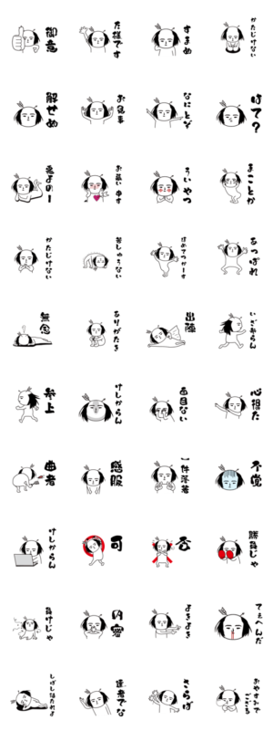 いつもの面白スタンプ武士語編。落ち武者が武士語ではなしてます。おひとつどうぞhitta より発売