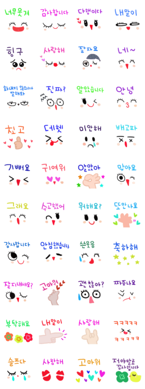 シンプルな韓国語の日常会話スタンプです。韓国語nenerin より発売