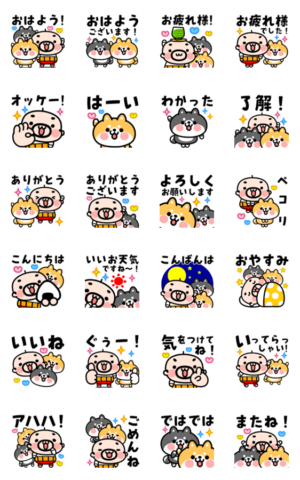 おやじ君と2匹の柴犬のかわいい飛び出すスタンプ。よく使うあいさつがそろってるよー!前田ムサシ より発売