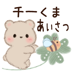 ほわっとミルクティー色のくま「チーくま」です。テディベア・かわいい・シンプル・あいさつ・日常・くま